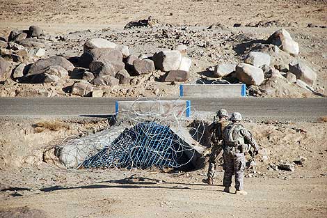 Se han colocado rejas y alambradas de espino en las canalizaciones para evitar el acceso, pero no es suficiente. Un pelotón estadounidense se dedica a rastrear cada día la carretera con equipos especiales. Y otras tropas también hacen inspecciones oculares de forma periódica. La operación es incluso más cansina que el trayecto de Tarin Kot a Sha Wali Kot. Al menos el trayecto sabes lo que dura. El rastreo de la calzada, no. Puede llevar dos horas, tres, cuatro. Nadie lo sabe concretar con precisión.